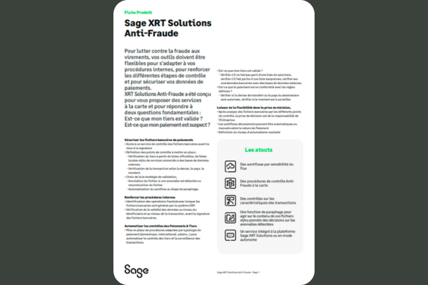 Avec Sage XRT Solutions, prévenez les risques de fraude et sécurisez vos paiements